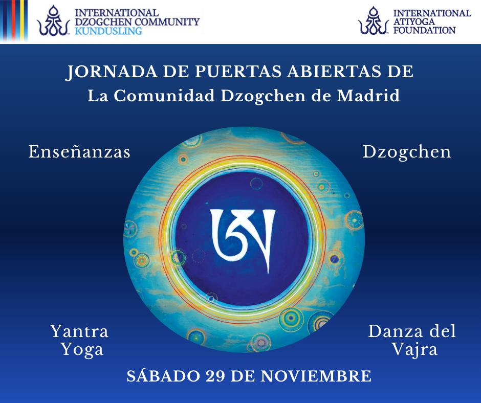 Ven a conocer la Comunidad Dzogchen de Madrid este próximo 29 de noviembre. Podremos disfrutar de una pequeña muestra de las prácticas de Yantra Yoga y Danza del Vajra, que se practican en la Comunidad Dzogchen, y conocer la Comunidad Dzogchen Internacional, fundada por Chögyal Namkhai Norbu y de la cual, recientemente, su hijo Namkhai Yeshi asumió su guía espiritual.