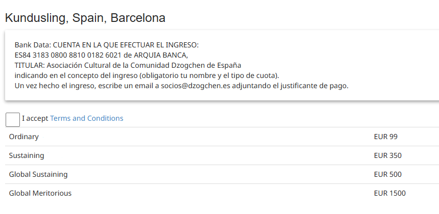 De las membresías recibidas, el 30% se transfiere a Dzamling Gar e IDC (International Dzogchen Community), así que con tu renovación contribuyes a las actividades de las tres comunidades.